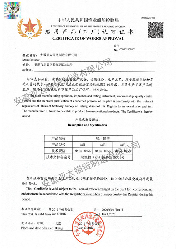 安徽亞太錨鏈制造有限公司